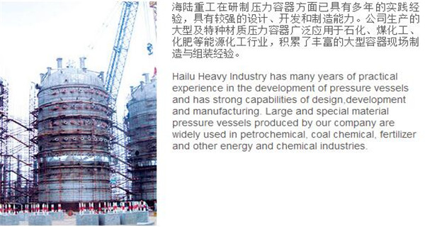 蘇州海陸重工股份有限公司位于江蘇省張家港市開發(fā)區(qū),是國內(nèi)一流的節(jié)能環(huán)保設(shè)備的專業(yè)設(shè)計制造企業(yè),目前并已初步形成鍋爐產(chǎn)品、大型壓力容器、核電設(shè)備、低溫產(chǎn)品、環(huán)保工程共同發(fā)展的業(yè)務(wù)格局。公司創(chuàng)建于1956年,注冊資本51640萬元,占地面積近50萬平米。公司下設(shè)八個控股子公司,一個余熱鍋爐研究所,在瑞士、北京、武漢、南京、上海、杭州、廣州等地設(shè)立分支機(jī)構(gòu),擁有雄厚的研發(fā)實力。公司秉承“科技領(lǐng)航、業(yè)界先鋒”的發(fā)展理念,注重研究廢熱、余熱利用和環(huán)境保護(hù)相結(jié)合的新技術(shù)研發(fā),自主設(shè)計能力居同行前列;公司承擔(dān)過國家863計劃,江蘇省科技成果轉(zhuǎn)化專項資金,榮獲國家科技進(jìn)步二等獎,產(chǎn)品擁有核心自主知識產(chǎn)權(quán)并取得專利50多項;公司推行國際先進(jìn)的管理體系標(biāo)準(zhǔn)和認(rèn)證,擁有 A級鍋爐制造許可證,A1、A2、A3級壓力容器設(shè)計和制造許可證,取得了民用核承壓設(shè)備制造資格許可證、美國機(jī)械工程師學(xué)會(ASME)“S”、“U”鋼印,通過了ISO9001質(zhì)量體系認(rèn)證、健康體系認(rèn)證和14000環(huán)境體系認(rèn)證;公司設(shè)備先進(jìn),裝備精良,專業(yè)嚴(yán)謹(jǐn)?shù)闹圃炖砟畲蛟斐銎焚|(zhì)非凡、質(zhì)量一流的“海陸”品牌聲譽(yù)。